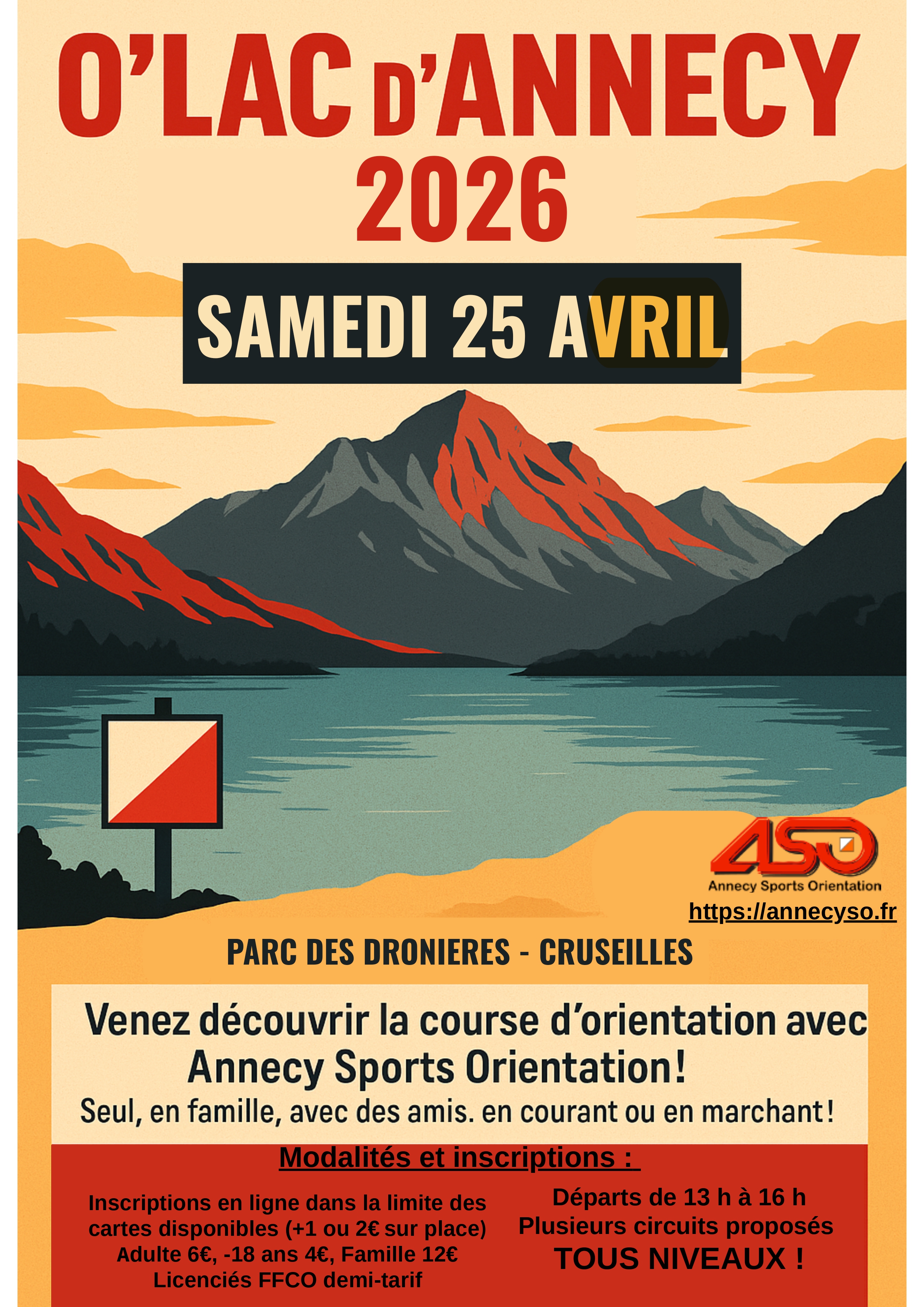 Evénement de découverte de la course d'orientation ouvert à tous, O'Lac d'Annecy vous donne rendez-vous le samedi 25 avril au Parc des Dronières à Cruseilles.